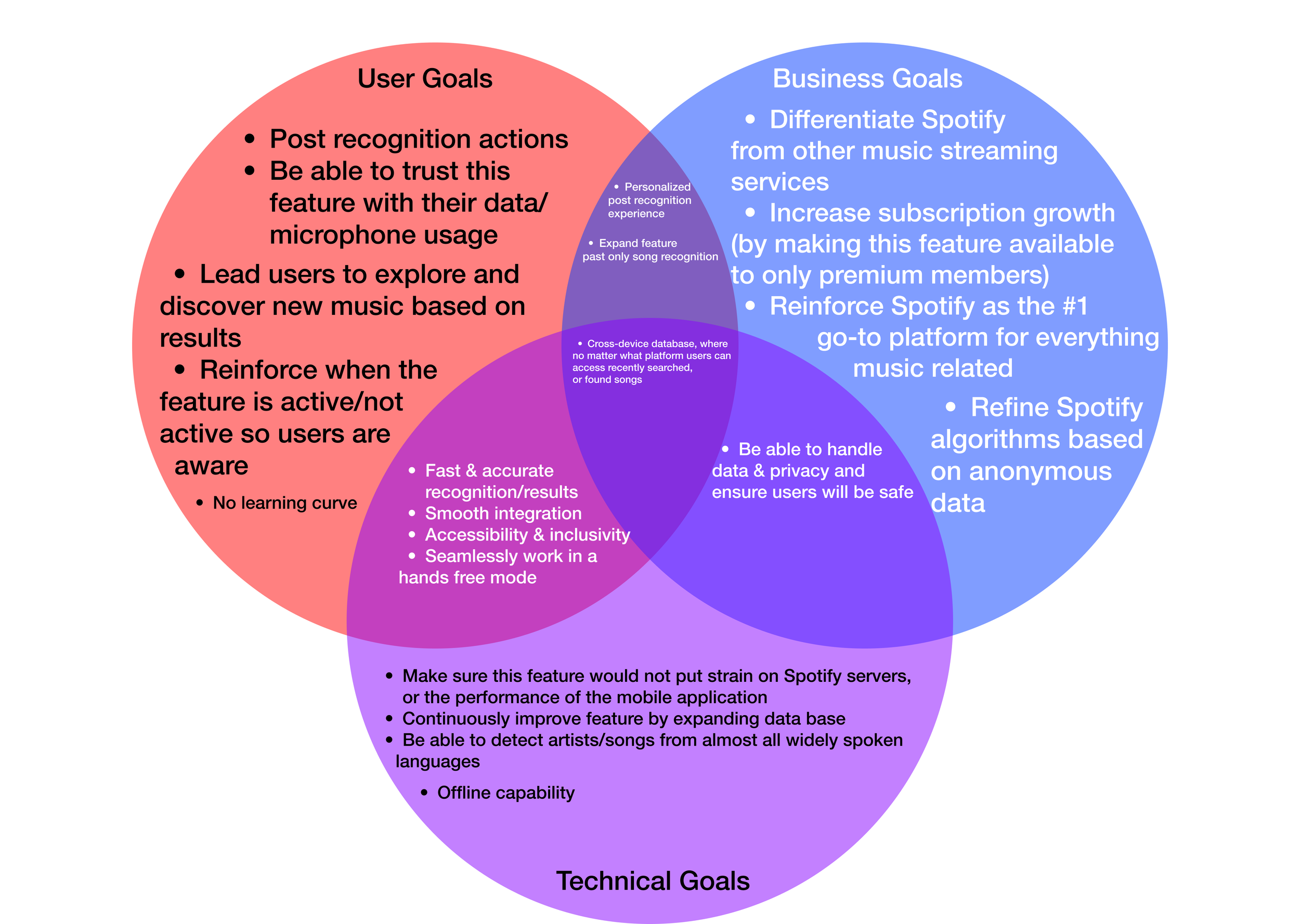 Solution: A hands-free music recognition feature within the Spotify mobile app, giving Spotify premium users the ability to identify songs and artists through audio input alone — without ever leaving the app.